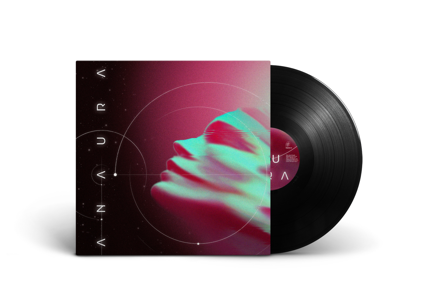The branding for the metalcore band "Anaura" merges modern clean design with an intense, otherworldly vibe. A sleek logo symbolizes the band's sharp sound, while a distorted photo effect introduces a haunting, cosmic atmosphere. This visual theme, featuring vibrant colors and celestial elements, is applied across vinyl LPs, posters, and shirts, encapsulating Anaura's powerful, ethereal energy.